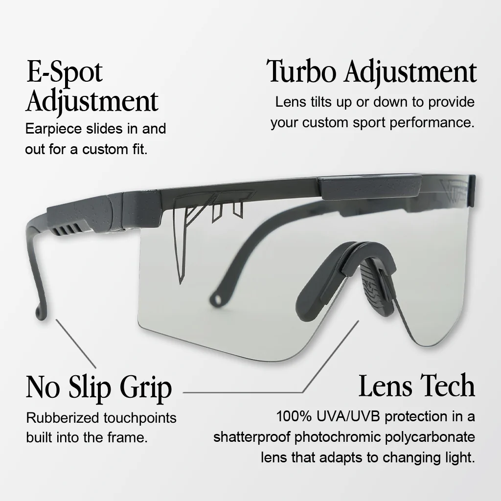 While the Pit Viper Originals were designed to be shot, sat on, and run over while maintaining sun and wind-bucking ability, consumers demanded an even more durable, premium-er Pit Viper. The future is here, it’s The 2000s. Built with a softer nose piece, improved optics, and sturdier E-Spot™ and Turbo Adjustment™ these bad boys will demand respect and authority with long-lasting comfort and versatility.