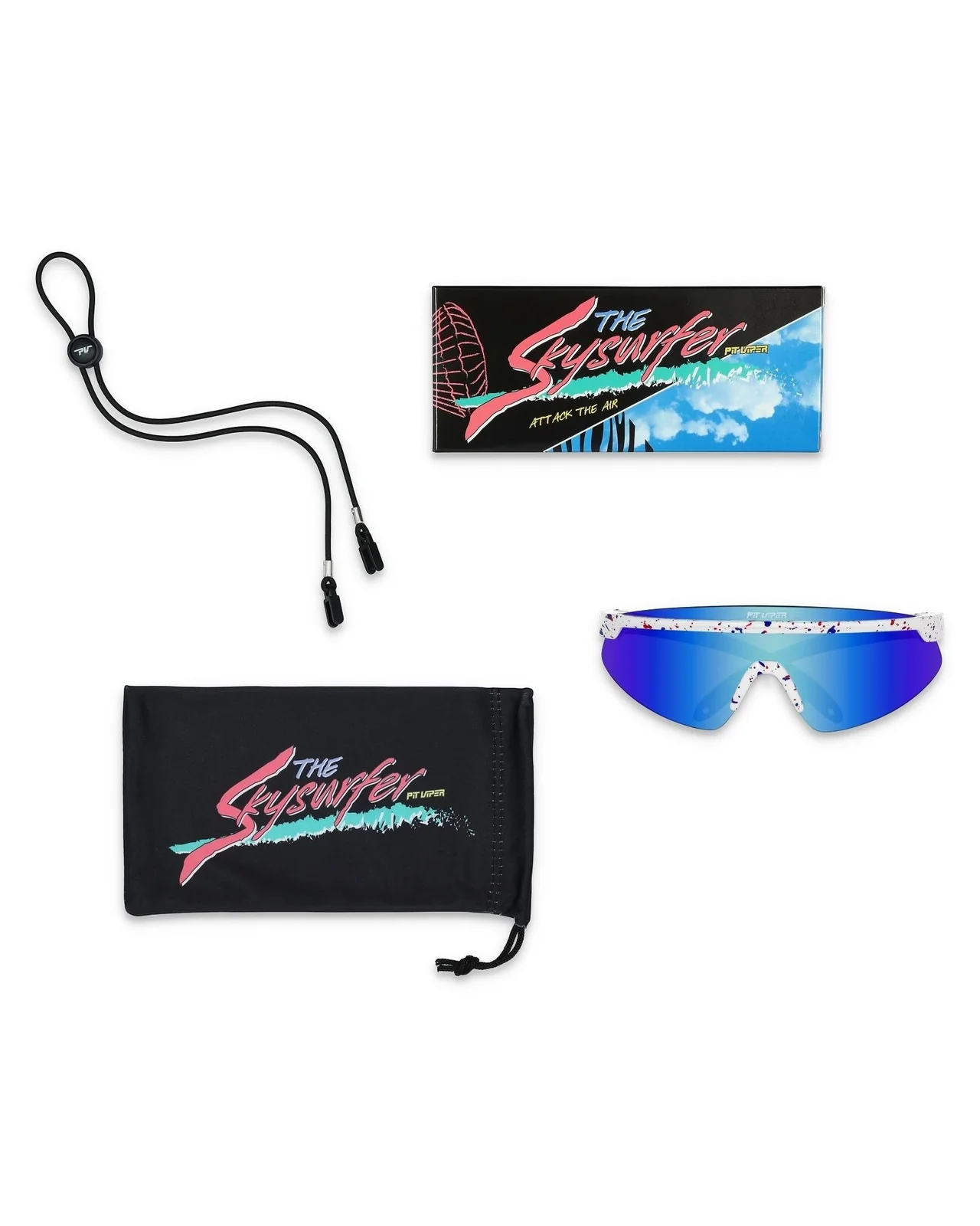 Tell the sun to get lost! No matter where the wind blows you, The Skysurfer has you covered. These aerodynamic Pit Vipers feature rubberized touchpoints to keep them planted at any altitude, while the anti-scratch lens ensures an extreme view in any condition.