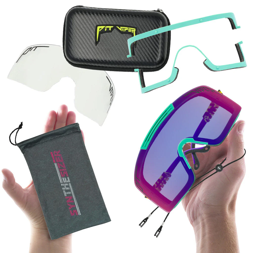 These aren’t sunglasses. These aren’t goggles. These are gogglasses, or was it goggasses? Suggles? Wait, what are we calling these? That’s right… The Synthesizer. Highly modular, you can interchange the included bonus lens and ensure a custom fit with the E-Spot Adjustment™ and Nose Bender nosepiece.
